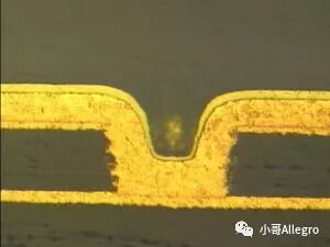 HDI 板的镭射钻孔由于是由激光钻出,激光钻孔时的高温将孔壁灼烧。产生焦渣附着在孔壁,同时由于激光的高温灼烧,将导致第二层铜被氧化。所以钻孔完毕后,微孔需要在电镀前进行前处理。由于板的微孔孔径比较小,又不是通孔,所以孔内的焦渣比较难以清除。去孔污时需要用高压水冲洗。 对于Stacked形式的2阶HDI,需要专门的盲孔电镀和COPPER FILLING的技术,因此成本上会大大提高,所以目前只用于一些高端产品的设计制作。 12.第三次内层干膜 经过金属化盲孔后,将进行第二次Conformal mask1。然后将开始次外层图形的制作,也就是再次回到内层干膜工序进行2、7层图形制作。制作好的线路会送到黑化工序进行氧化处理。随后PCB会进行第三次层压。 层压后的板子会进行第三次盲孔蚀铜1和第二次盲孔蚀铜2的制作。这是为了第二次激光钻孔做准备。由上可以看到为了第二次HDI需要经过多次的对位,所以对位误差也累积增大,这是造成2阶HDI报废率较大的原因之一。 目前就制作难度来说,对于2阶的HDI板的各种设计,由简至难的顺序如下: 1.有1-2层、2-3层孔。2.仅有1-3层的孔。3.有1-2层、1-3层的孔。4.有2-3层、1-3层的孔。5.有1-2层、2-3层、1-3层的孔。 注: 1.HDI孔设计时需要尽量采用对称设计,以上仅列出一边的情况,另一边也相同。 2.上面指的孔均为HDI孔 13.第二次激光钻孔 14.机械钻孔(钻通孔) 15.去钻污与沉铜(P.T.H) 将盲孔与通孔一起金属化 至此HDI的特殊流程结束下面转入普通板的正常流程。 16.外层干膜与图形电镀(DRY FILM & PATTERN PLATING) 外层图形转移与内层图形转移的原理差不多,都是运用感光的干膜和拍照的方法将线路图形印到板子上。 外层干膜与内层干膜不同在于: ⒈ 如果采用减成法,那么外层干膜与内层干膜相同,采用负片做板。板子上被固化的干膜部分为线路。去掉没固化的膜,经过酸性蚀刻后退膜,线路图形因为被膜保护而留在板上。 ⒉ 如果采用正常法,那么外层干膜采用正片做板。板子上被固化的部分为非线路区(基材区)。去掉没固化的膜后进行图形电镀。有膜处无法电镀,而没有膜处,先镀上铜后镀上锡。退膜后进行碱性蚀刻,最后再退锡。线路图形因为被锡的保护而留在板上。 17.湿菲林(阻焊) WET FILM SOLDER MASK 1. 概念:阻焊工序是在板子的表面增加一层阻焊层。这层阻焊层称为阻焊剂(Solder Mask)或称阻焊油墨,俗称绿油。其作用主要是防止导体线路等不应有的上锡,防止线路之间因潮气、化学品等原因引起的短路,生产和装配过程中不良操作造成的断路、绝缘以及抵抗各种恶劣环境,保证印制板的功能等。 2. 原理:目前PCB厂家使用的这层油墨基本上都采用液态感光油墨。其制作原理与线路图形转移有部分的相似。它同样是利用菲林遮挡曝光,将阻焊图形转移到PCB表面。其具体流程如下: 前处理—— >涂覆—— >预烘—— >曝光—— >显影——>UV固化—— >热固化 与此工序相关联的是soldmask文件,其涉及到的工艺能力包含了阻焊对位精度、绿油桥的大小、过孔的制作方式、阻焊的厚度等等参数。同时阻焊油墨的质量还会对后期的表面处理、SMT贴装、保存及使用寿命带来很大的影响。加上其整个工序制作时间长、制作方式多,所以是PCB生产的一个重要工序。 目前过孔的设计与制作方式是众多设计工程师比较关心的问题。而阻焊带来的表观问题则是PCB质检工程师重点检查的项目。 18.选择性沉金(IMMERSION GOLD) 化学镀镍/金是在印制电路板做上阻焊膜后,对裸露出来需要镀金属的部分采用的一种表面处理方式。由于科技的发展,PCB上的线宽间距变小,表面封装增多,这就要求连接盘或焊垫有良好的共面性和平坦度,要求PCB不能弯曲。化学Ni/Au表面镀层则可满足上述的要求,另外由于它表层的金比较稳定、防护性好,所以它的存储时间也和铅锡差不多。 由于这种镍/金的镀层是在印制电路板做上阻焊膜后制作的,所以只能采用化学镍/金的方式来实现选择性涂覆。作为PCB的表面镀层,镍层厚度一般为5μm,而金厚一般在0.05—0.1μm之间,作为非可镀焊层Au的厚度不能太高,否则会产生脆性和焊点不牢的故障,如果太薄则防护性不好。其缺点是可焊性较差,容易发生黑盘的缺陷。 19.字符(C/M PRINTING ) 20.铣外形(PROFILING) 到目前为止,我们制作的PCB一直都属于PANEL的形式,即一块大板。现在因为整个板子的制作已经完成,我们需要将交货图形按照(UNIT交货或SET交货)从大板上分离下来。这时我们将利用数控机床按照事先编好的程序,进行加工。外形边、条形铣槽,都将在这一步完成。如有V-CUT,还需增加V-CUT工艺。在此工序涉及到的能力参数有外形公差、倒角尺寸、内角尺寸等等。设计时还需考虑图形到板边的安全距离等参数。 21.电子测试(E-TEST) 电子测试即PCB的电气性能测试,通常又称为PCB的“通”、“断”测试。在PCB厂家使用的电气测试方式中,最常用的是针床测试和飞针测试两种。 ㈠针床分为通用网络针床和专用针床两类。通用针床可以用于测量不同网络结构的PCB,但是其设备价钱相对较为昂贵。而专用针床是采用为某款PCB专门制定的针床,它仅适用于相应的该款PCB。 ㈡飞针测试使用的是飞针测试机,它通过两面的移动探针(多对)分别测试每个网络的导通情况。由于探针可以自由移动,所以飞针测试也属于通用类测试。 22.OSP 有机可焊性保护剂(OSP),又称为防氧化助焊剂